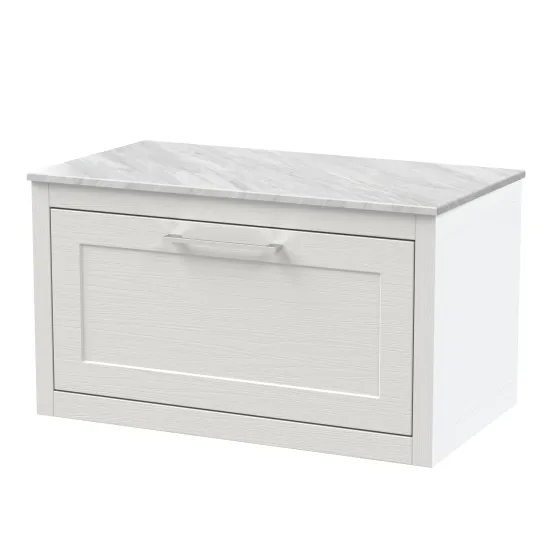 BC Designs Crestfield 800mm Wall Hung 1-Drawer Unit & Marble Top - Nimbus White