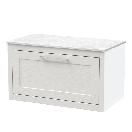 BC Designs Crestfield 800mm Wall Hung 1-Drawer Unit & Marble Top - Nimbus White