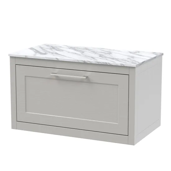 BC Designs Crestfield 800mm Wall Hung 1-Drawer Unit & Marble Top - Earl's Grey