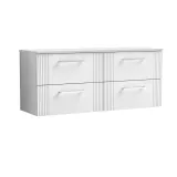 Nuie Deco 1200mm Satin White Wall Hung 4-Drawer Vanity & Worktop With Chrome Handles