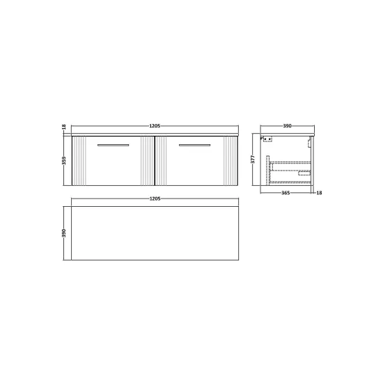 nuie Deco 1200mm Wall Hung 2-Drawer Vanity & Worktop - Soft Black