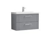 Nuie 810mm Part Fluted Satin Grey Wall Hung 2-Drawer Vanity Unit with Basin & Chrome Handles