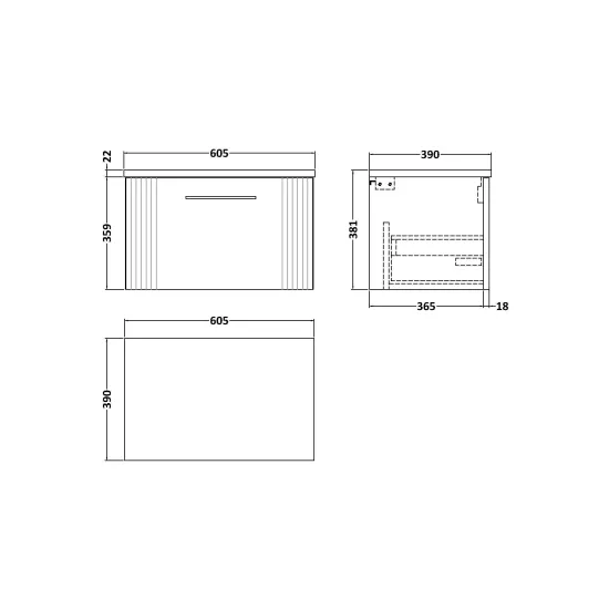nuie Deco 600mm Wall Hung Single Drawer Vanity & Laminate Top - Satin Blue