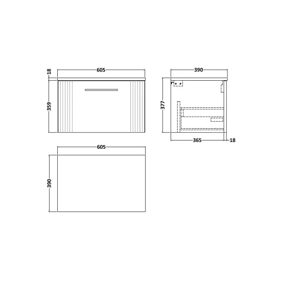 nuie Deco 600mm Wall Hung Single Drawer Vanity & Worktop - Soft Black