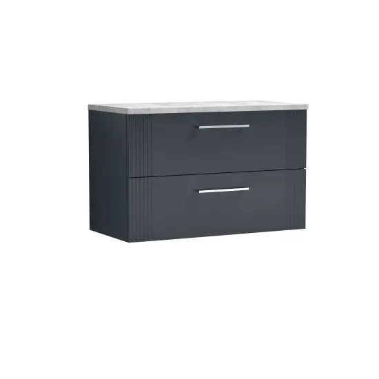 nuie Deco 800mm Wall Hung 2-Drawer Vanity & Laminate Top - Soft Black