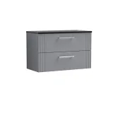 nuie Deco 800mm Wall Hung 2-Drawer Vanity & Laminate Top - Satin Grey