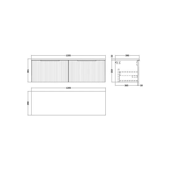 Hudson Reed Fluted 1200mm Soft Black Wall Hung 2-Drawer Vanity Unit With Laminate Worktop