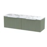 Hudson Reed Fluted 1200mm Satin Green Wall Hung 2-Drawer Vanity Unit With Laminate Worktop
