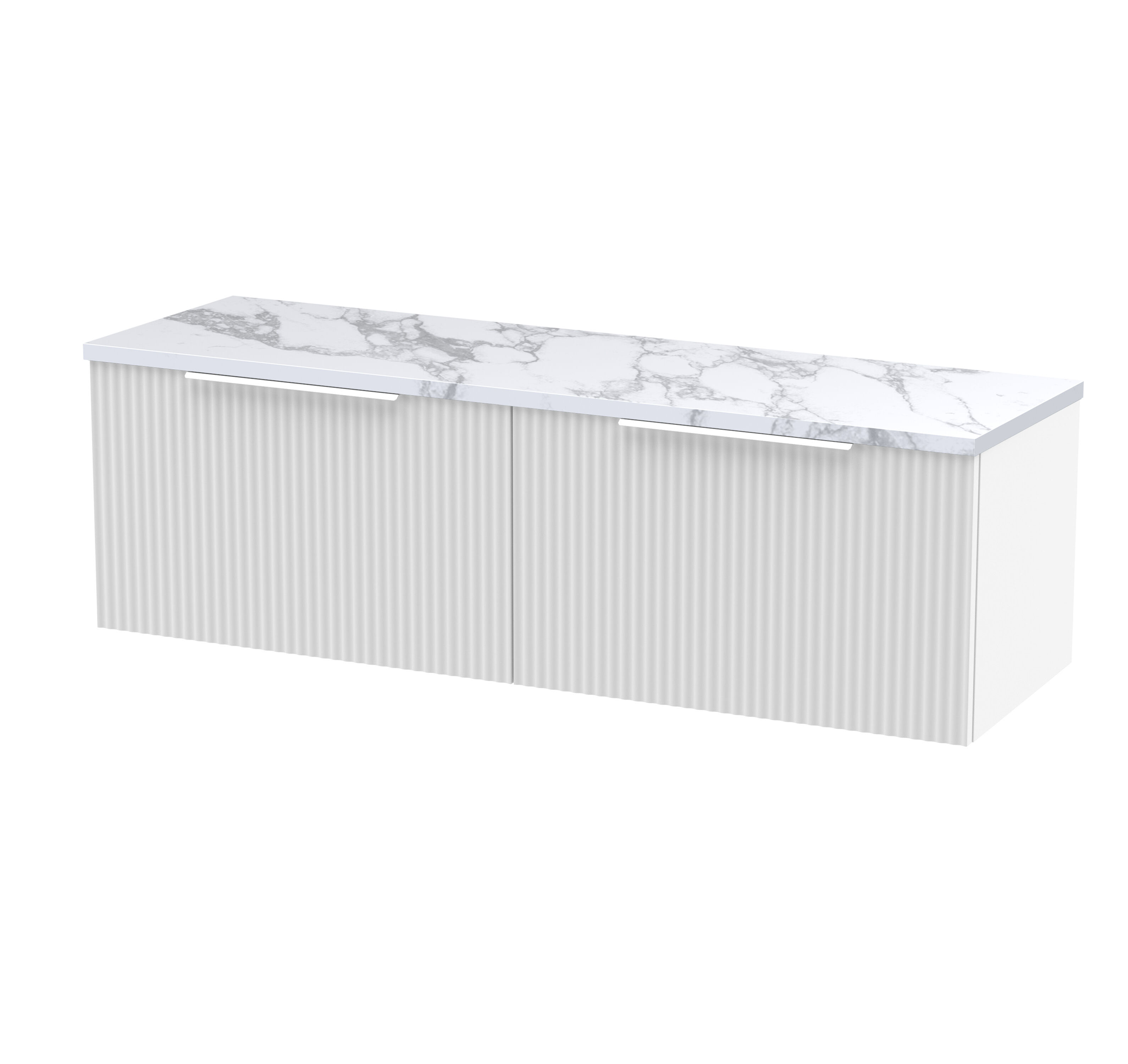 Hudson Reed Fluted 1200mm Wall Hung 2-Drawer Vanity & Laminate Worktop - Satin White