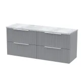Hudson Reed Fluted 1200mm Wall Hung 4-Drawer Vanity & Laminate Worktop - Satin Grey