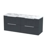 Hudson Reed Fluted 1200mm Wall Hung 4-Drawer Vanity & Laminate Worktop - Satin Blue