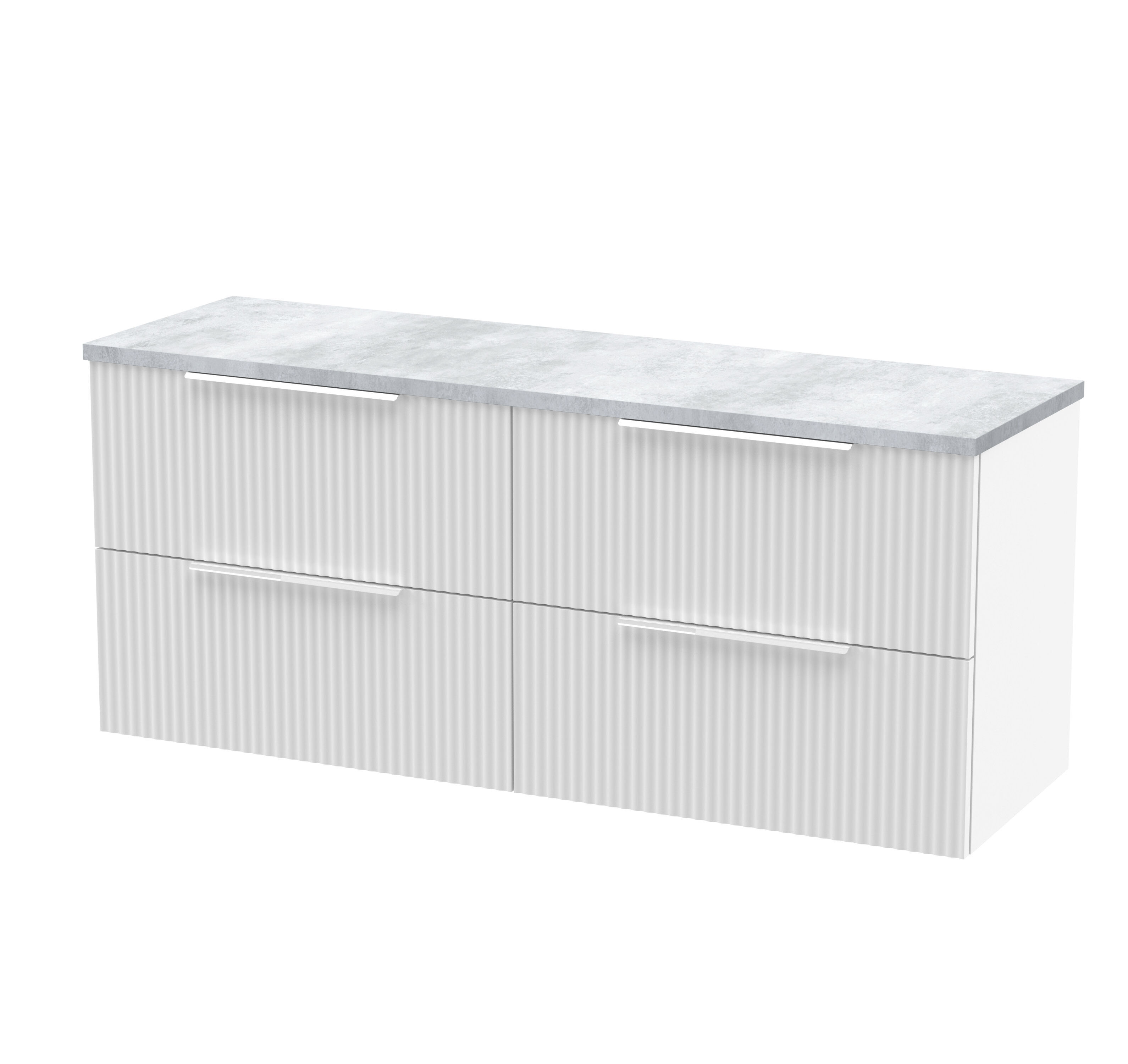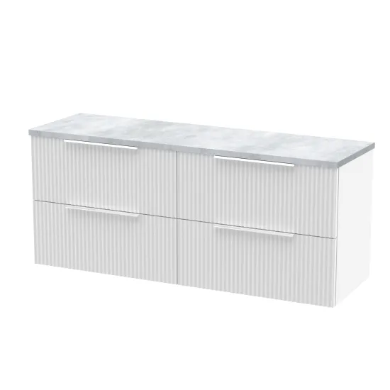 Hudson Reed Fluted 1200mm Wall Hung 4-Drawer Vanity & Laminate Worktop - Satin White