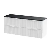Hudson Reed Fluted 1200mm Wall Hung 4-Drawer Vanity & Laminate Worktop - Satin White