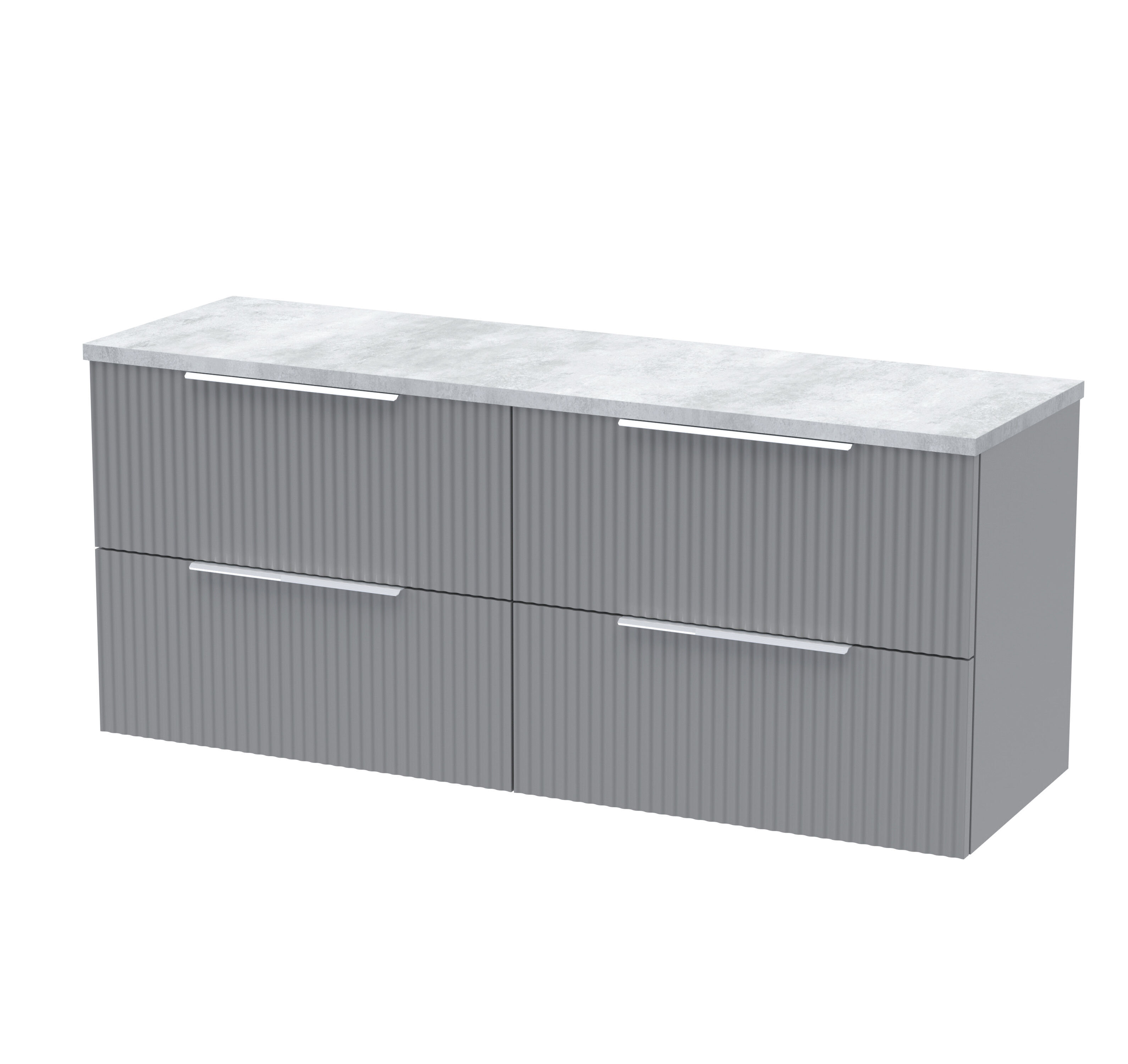 Hudson Reed Fluted 1200mm Wall Hung 4-Drawer Vanity & Laminate Worktop - Satin Grey