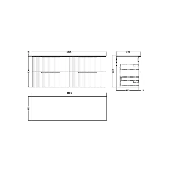 Hudson Reed Fluted 1200mm Wall Hung 4-Drawer Vanity and Worktop - Satin Grey