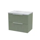 Hudson Reed Fluted 600mm Satin Green Wall Hung 2-Drawer Vanity Unit With Laminate Top