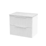 Hudson Reed Fluted 600mm Satin White Wall Hung 2-Drawer Vanity With Laminate Top
