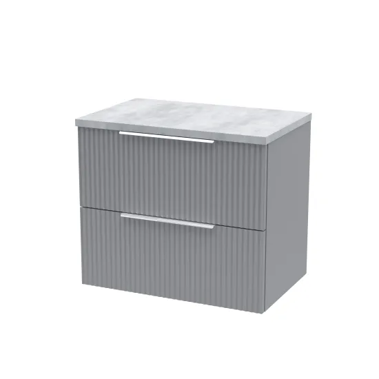 Hudson Reed Fluted 600mm Wall Hung 2-Drawer Vanity and Laminate Top - Satin Grey