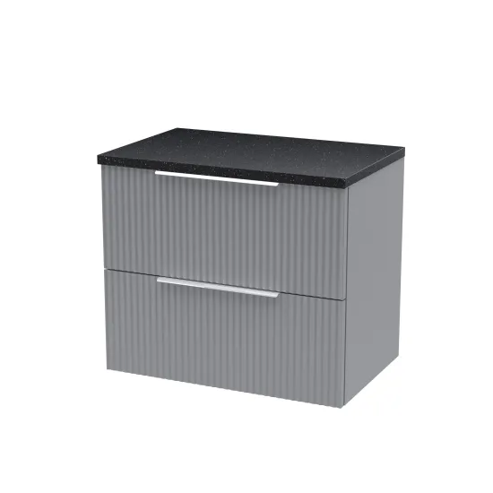 Hudson Reed Fluted 600mm Wall Hung 2-Drawer Vanity and Laminate Top - Satin Grey