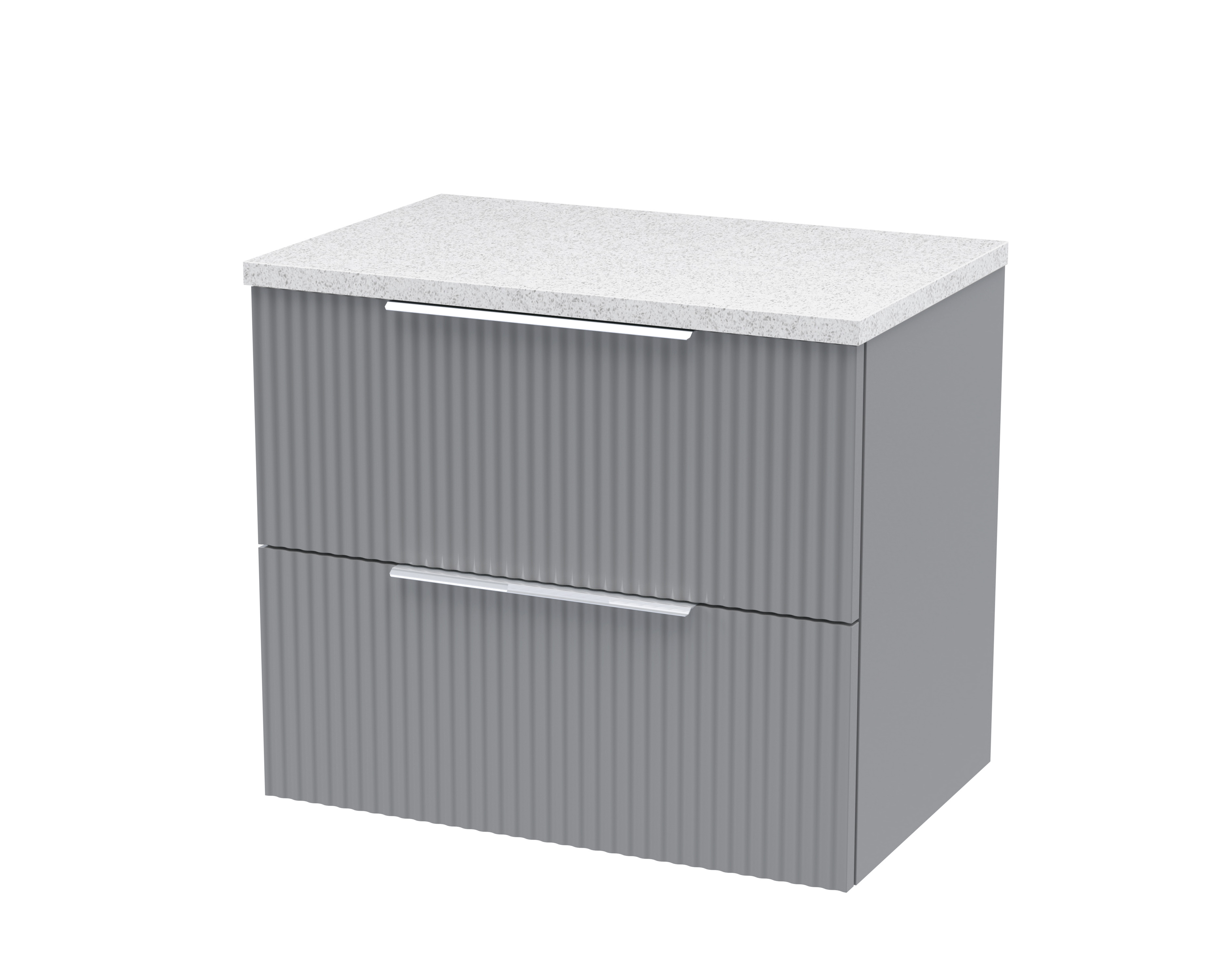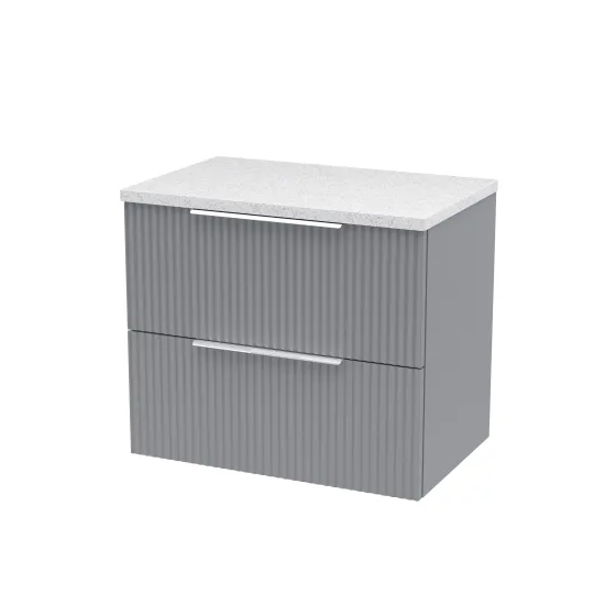 Hudson Reed Fluted 600mm Wall Hung 2-Drawer Vanity and Laminate Top - Satin Grey