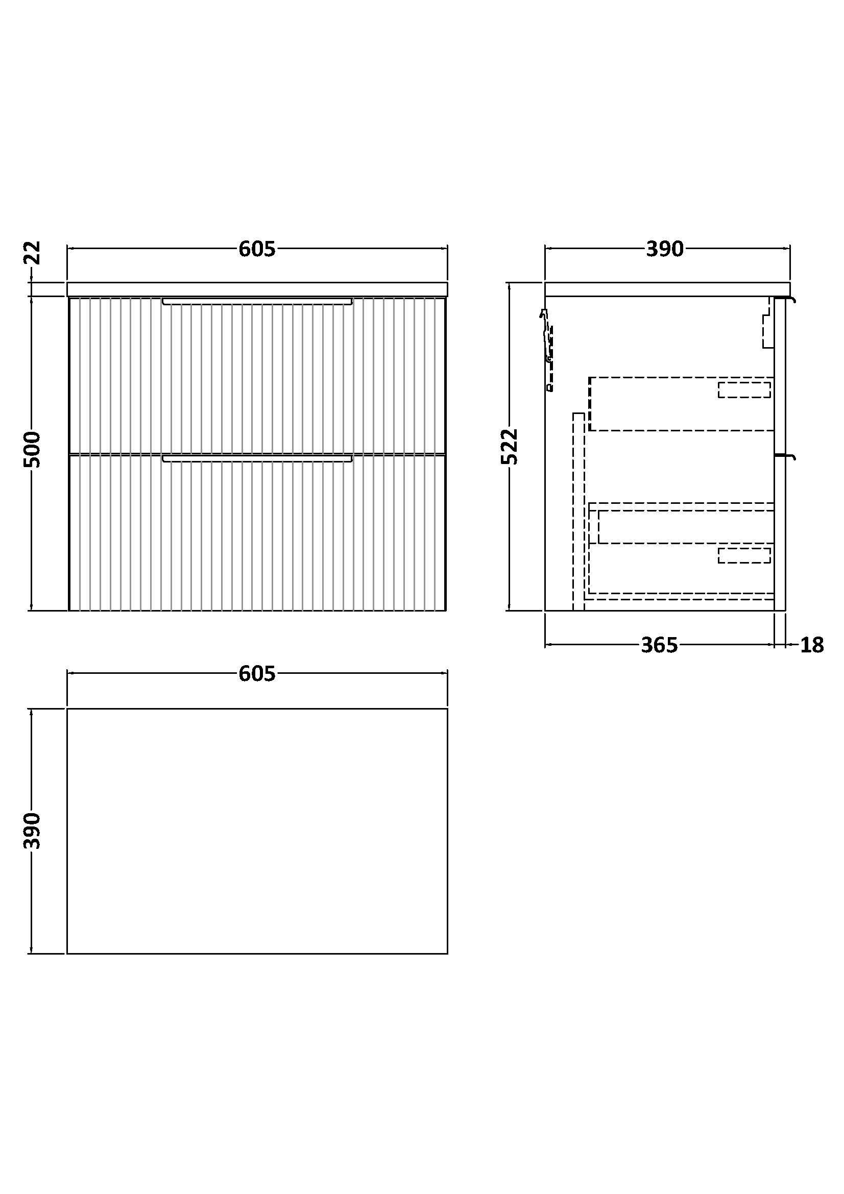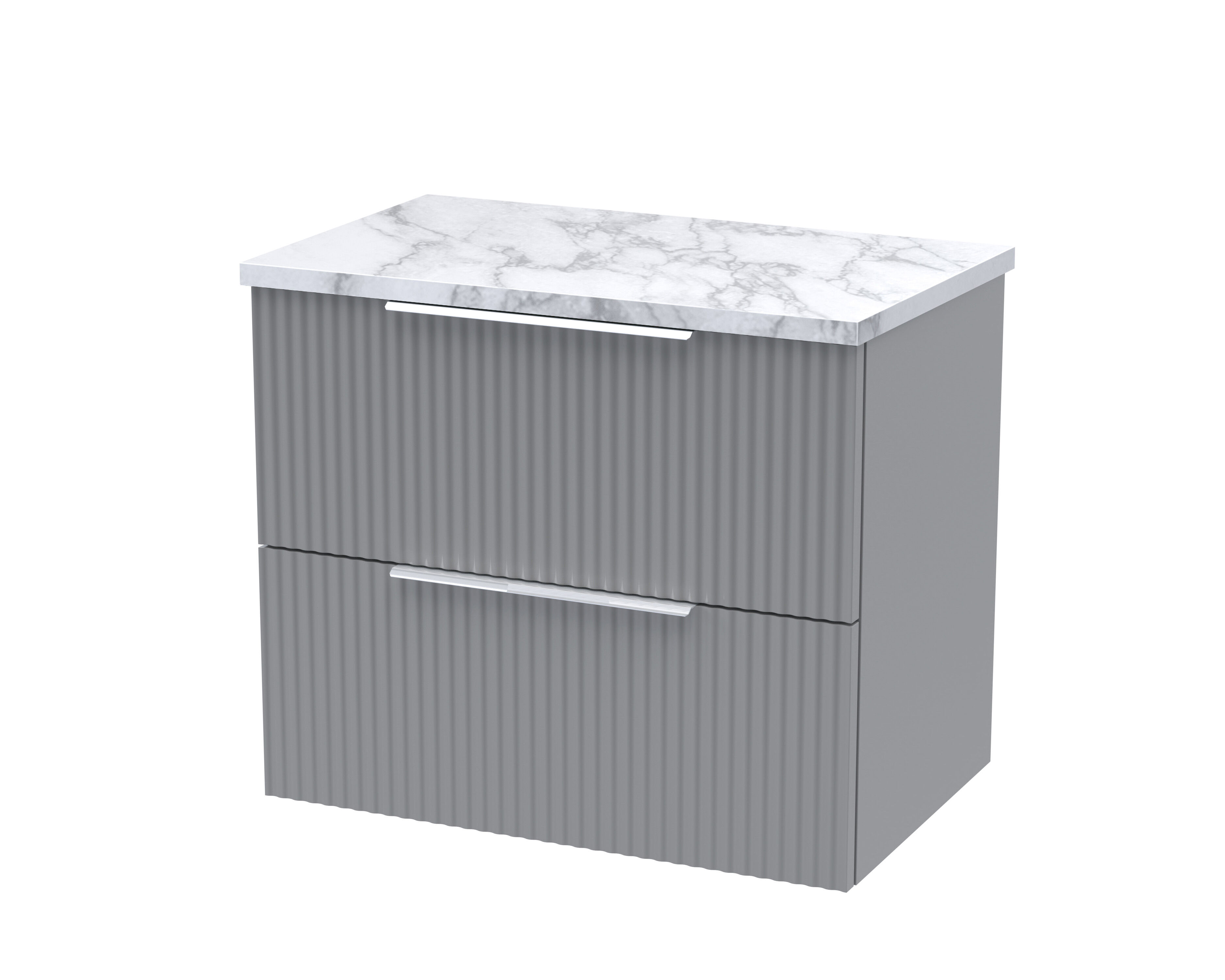 Hudson Reed Fluted 600mm Wall Hung 2-Drawer Vanity & Laminate Worktop - Satin Grey