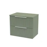 Hudson Reed Fluted 600mm Satin Green Wall Hung 2-Drawer Vanity Unit With Worktop