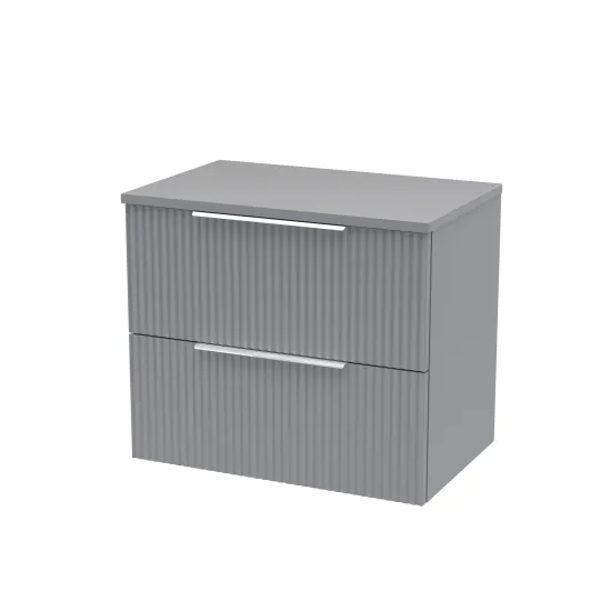Hudson Reed Fluted 600mm Wall Hung 2-Drawer Vanity and Worktop - Satin Grey