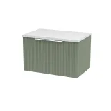 Hudson Reed Fluted 600mm Satin Green Wall Hung Single Drawer Vanity With Laminate Top