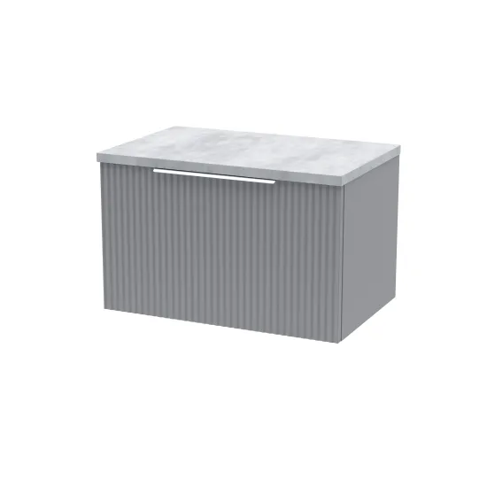 Hudson Reed Fluted 600mm Wall Hung Single Drawer Vanity and Laminate Top - Satin Grey