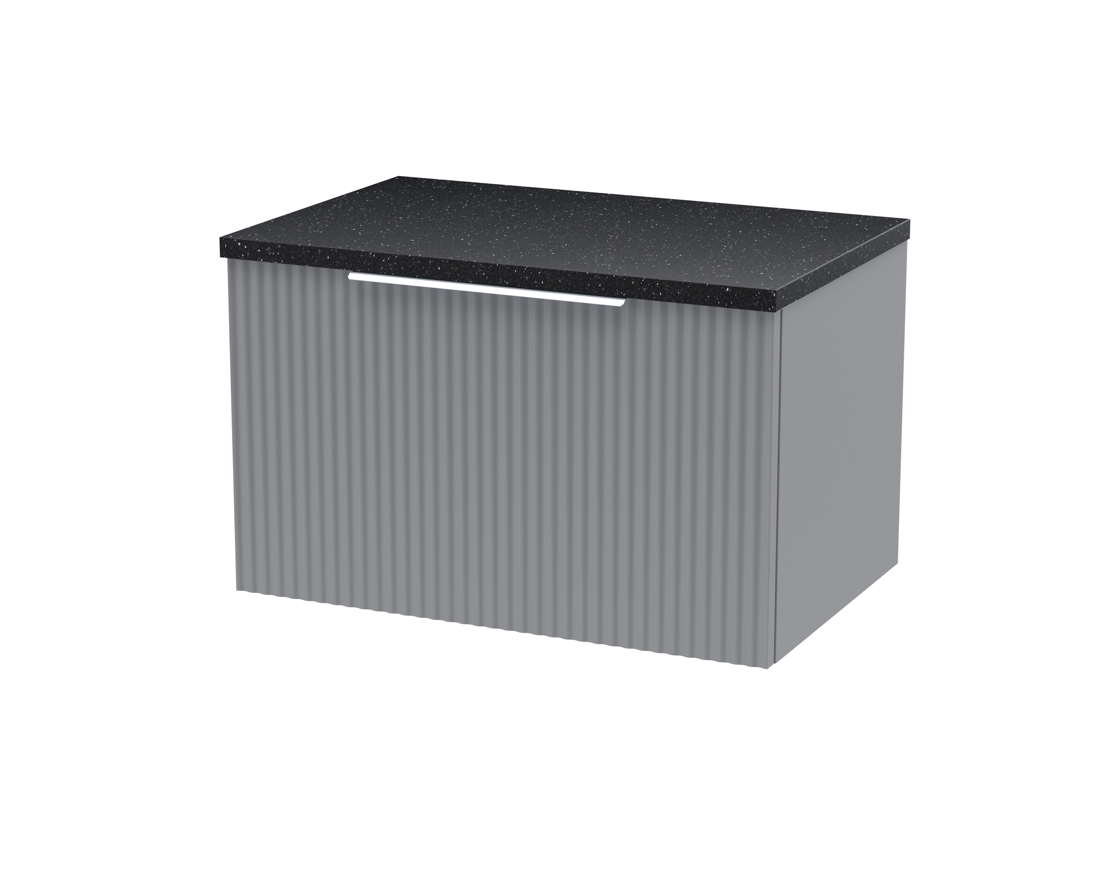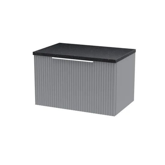 Hudson Reed Fluted 600mm Satin Grey Wall Hung Single Drawer Vanity Unit With Laminate Top