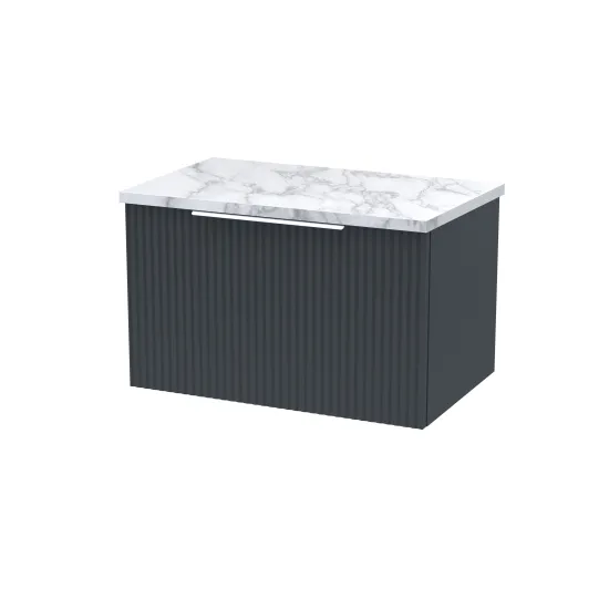 Hudson Reed Fluted 600mm Wall Hung Single Drawer Vanity & Laminate Worktop - Soft Black