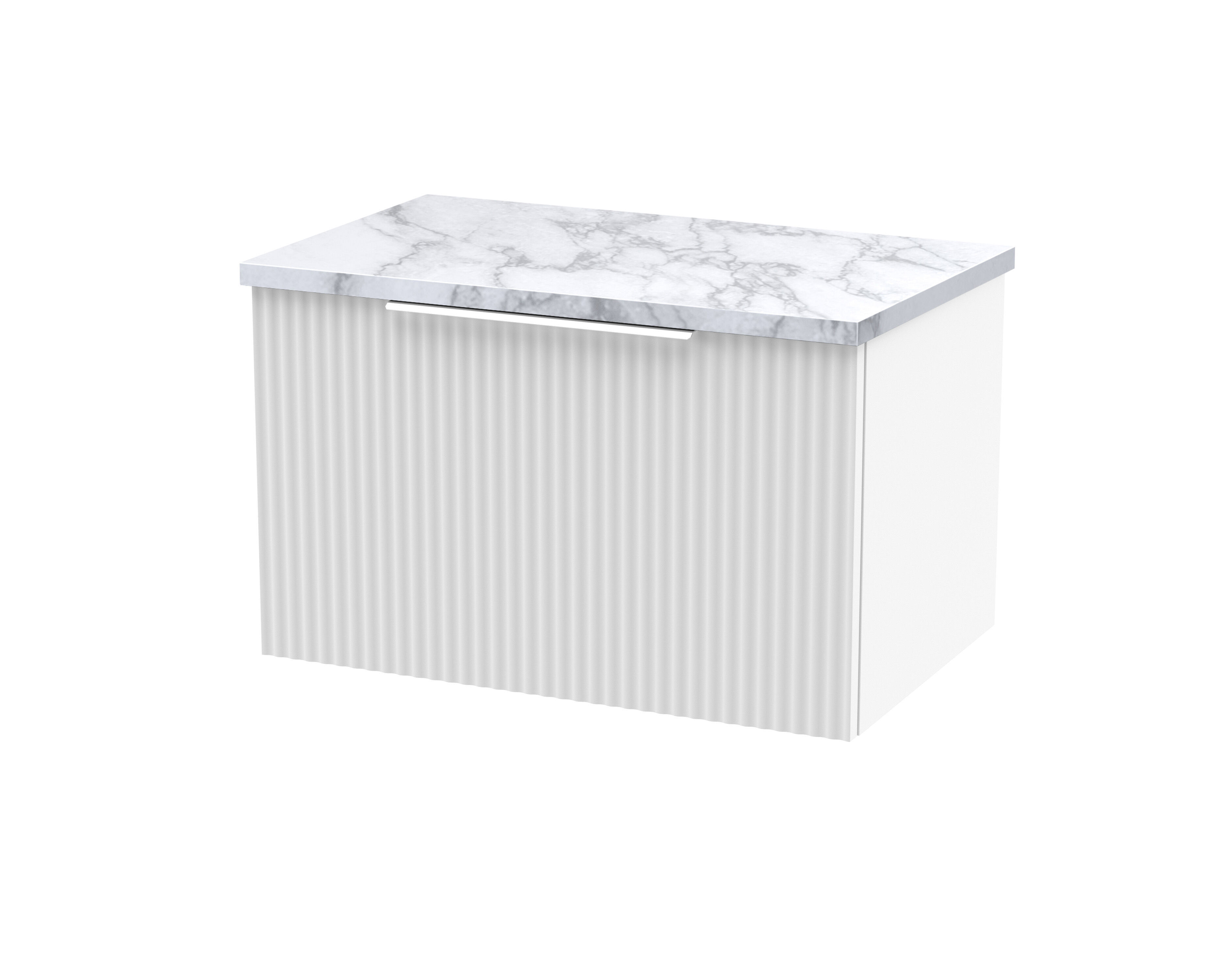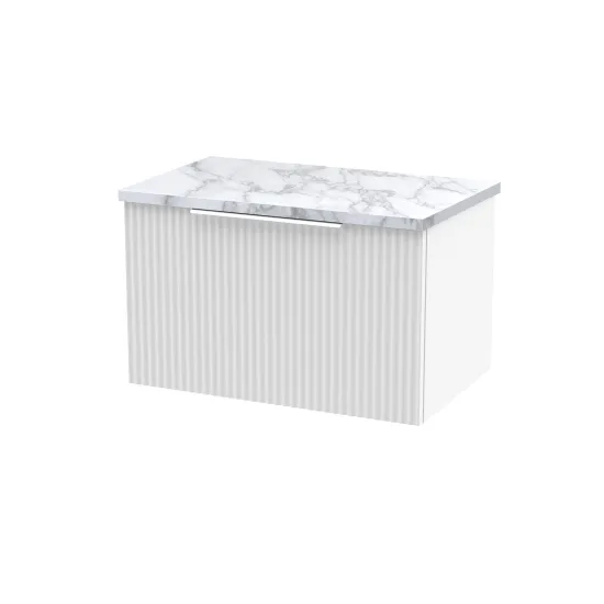 Hudson Reed Fluted 600mm Wall Hung Single Drawer Vanity & Laminate Worktop - Satin White