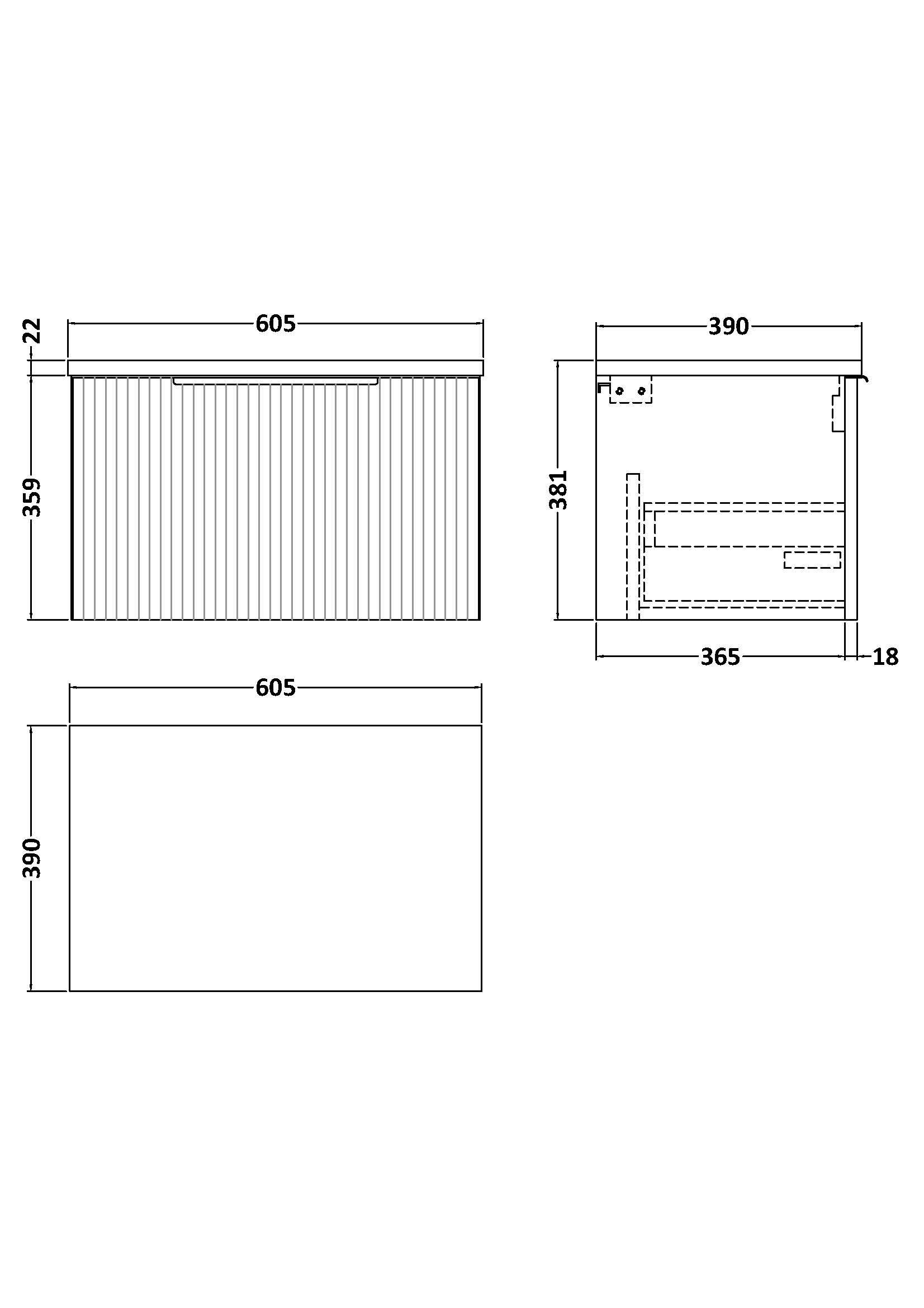 Hudson Reed Fluted 600mm Wall Hung Single Drawer Vanity With Laminate Worktop & Soft-Close Drawer
