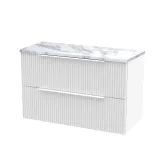Hudson Reed Fluted 800mm Satin White Wall Hung 2-Drawer Vanity Unit With Laminate Worktop