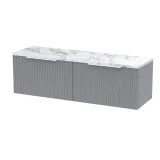 Hudson Reed Fluted 1200mm Wall Hung 2-Drawer Satin Grey Vanity Unit With Laminate Worktop