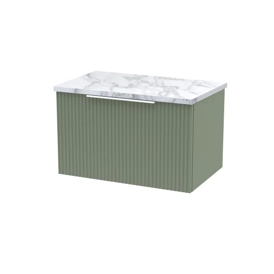 Hudson Reed Fluted 600mm Wall Hung Single Drawer Vanity & Laminate Worktop - Satin Green