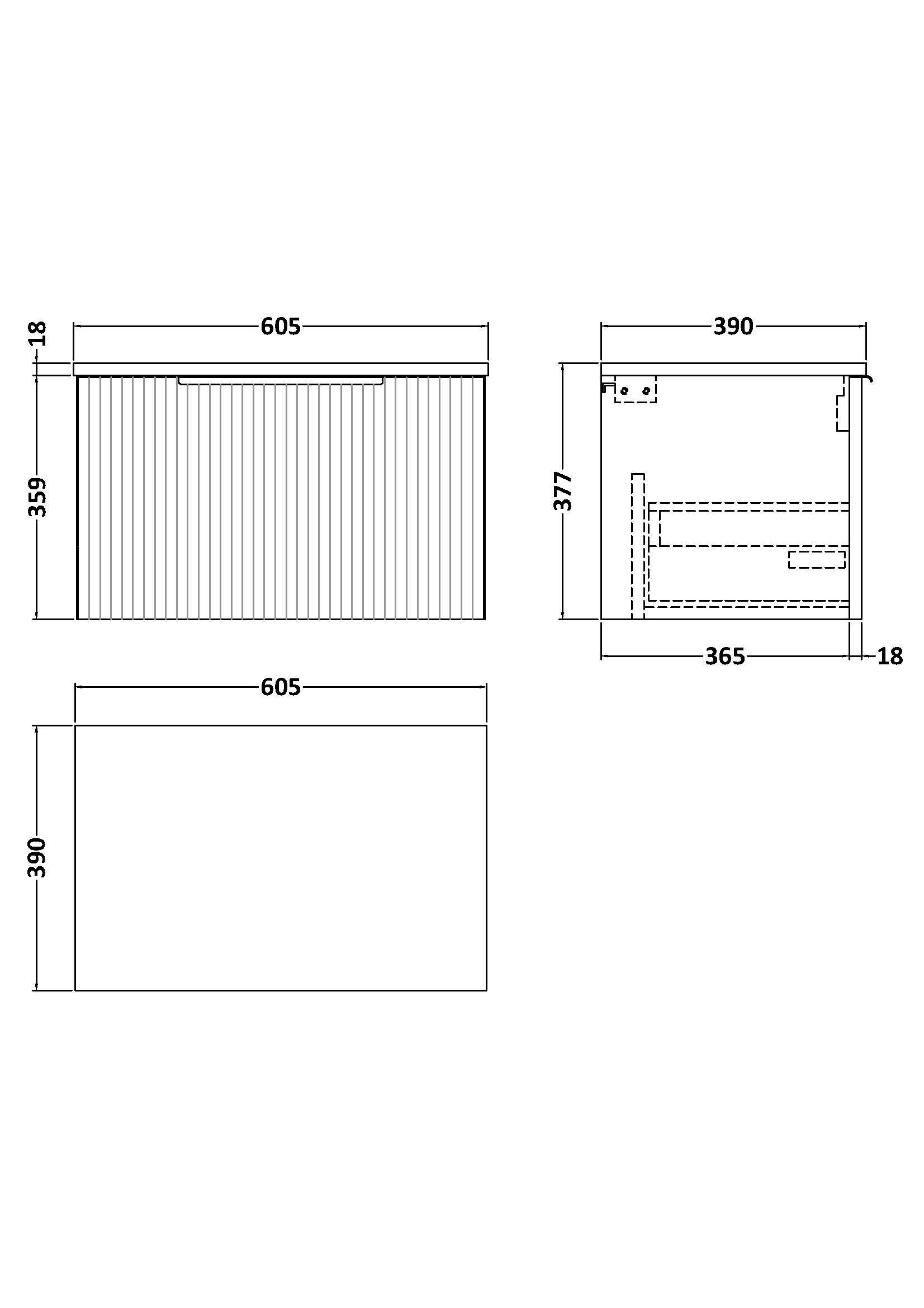 Hudson Reed Fluted 600mm Wall Hung Single Drawer Vanity and Worktop - Satin Grey