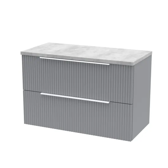 Hudson Reed Fluted 800mm Wall Hung 2-Drawer Vanity and Laminate Top - Satin Grey