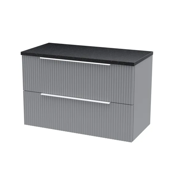 Hudson Reed Fluted 800mm Satin Grey Wall Hung 2-Drawer Vanity Unit With Laminate Top