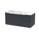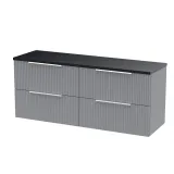 Hudson Reed Fluted 1200mm Satin Grey Wall Hung 4-Drawer Vanity Unit With Laminate Worktop
