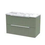 Hudson Reed Fluted 800mm Satin Green Wall Hung 2-Drawer Vanity With Laminate Worktop