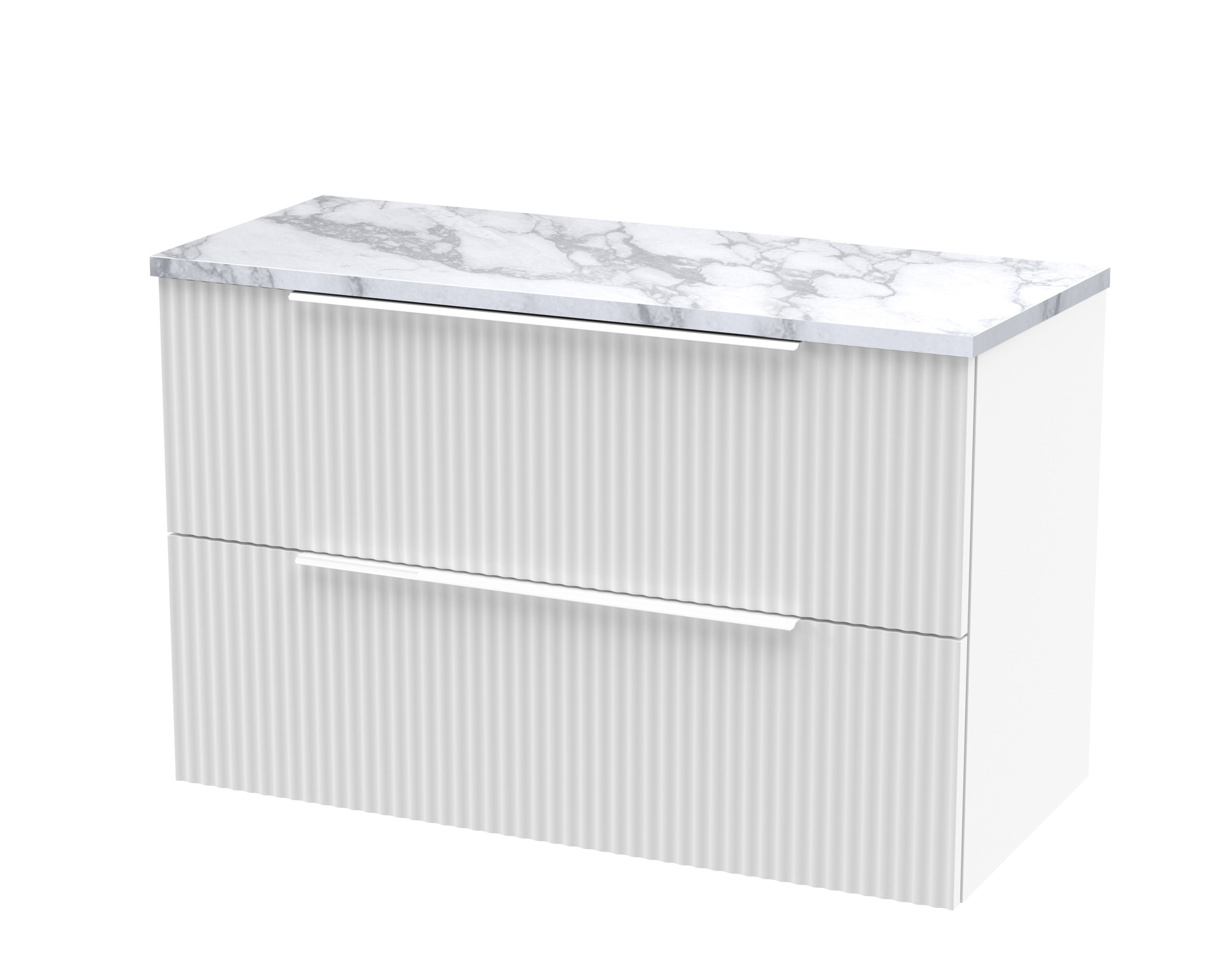 Hudson Reed Fluted 800mm Wall Hung 2-Drawer Vanity & Laminate Worktop - Satin White