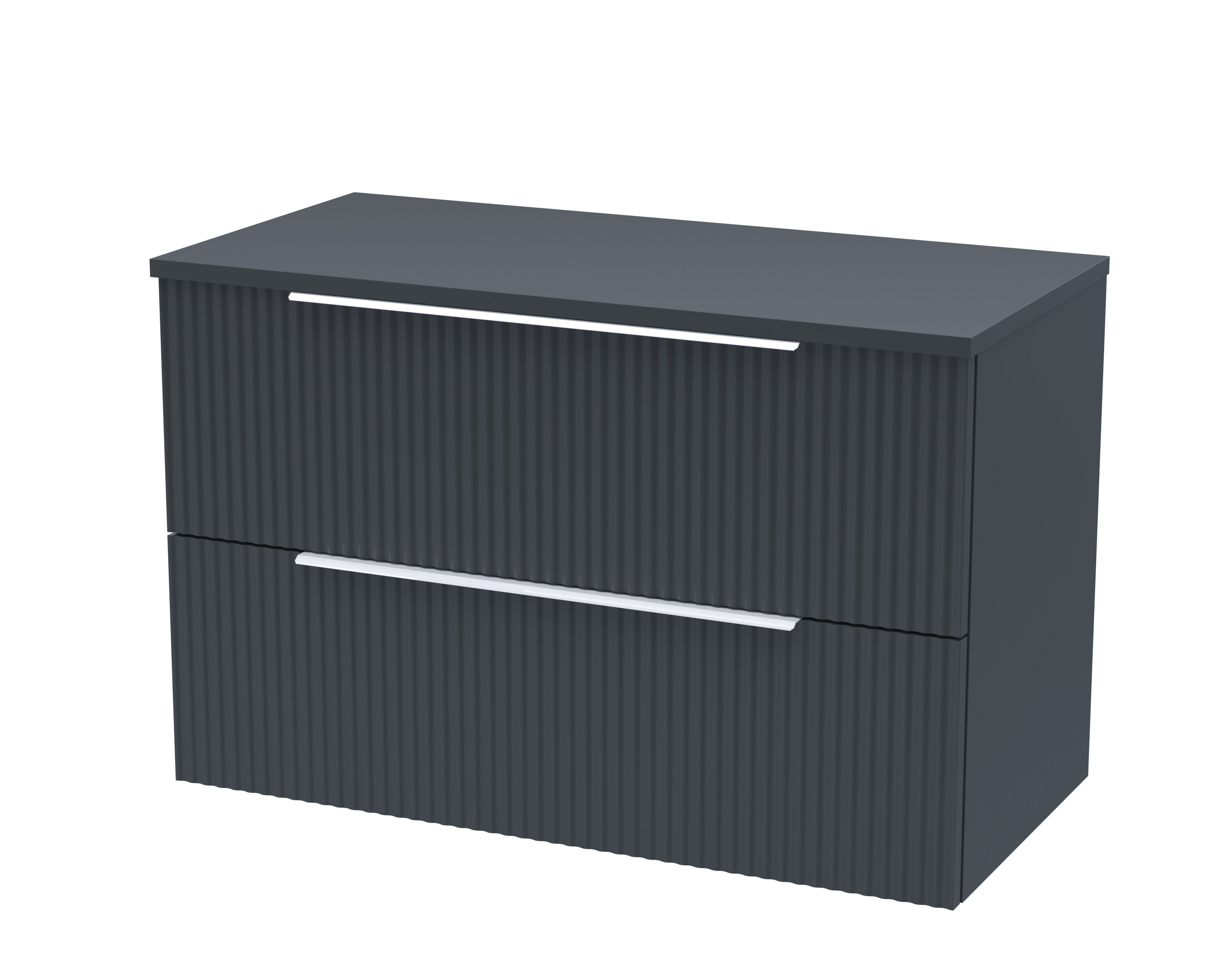 Hudson Reed Fluted 800mm Wall Hung 2-Drawer Vanity and Worktop - Soft Black