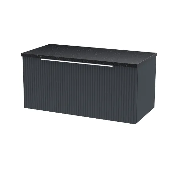 Hudson Reed Fluted 800mm Soft Black Wall Hung Single Drawer Vanity Unit With Laminate Top