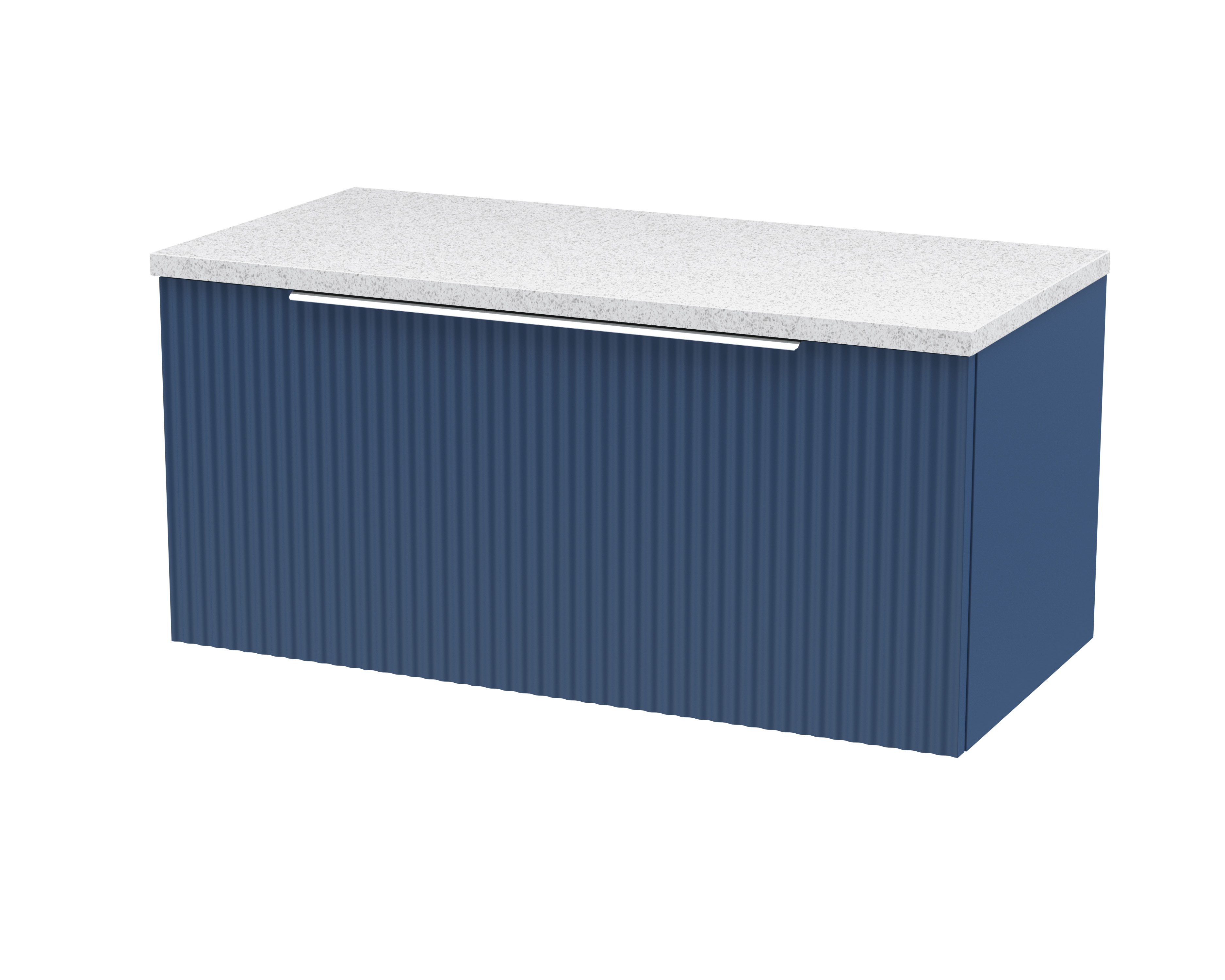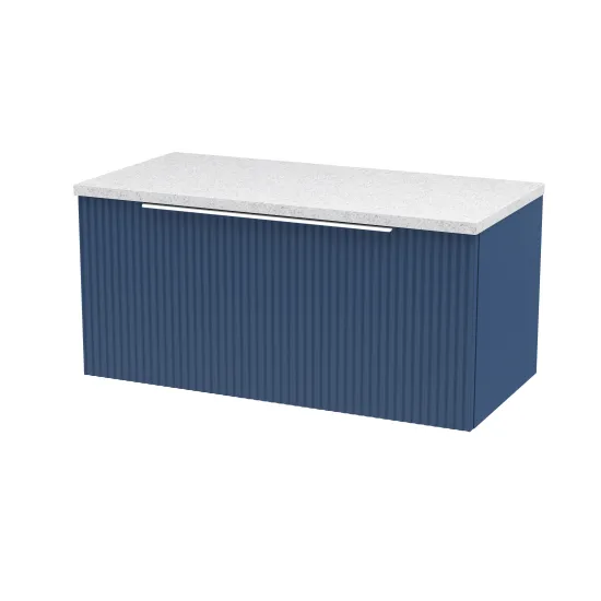 Hudson Reed Fluted 800mm Satin Blue Wall Hung Single Drawer Vanity With Laminate Top
