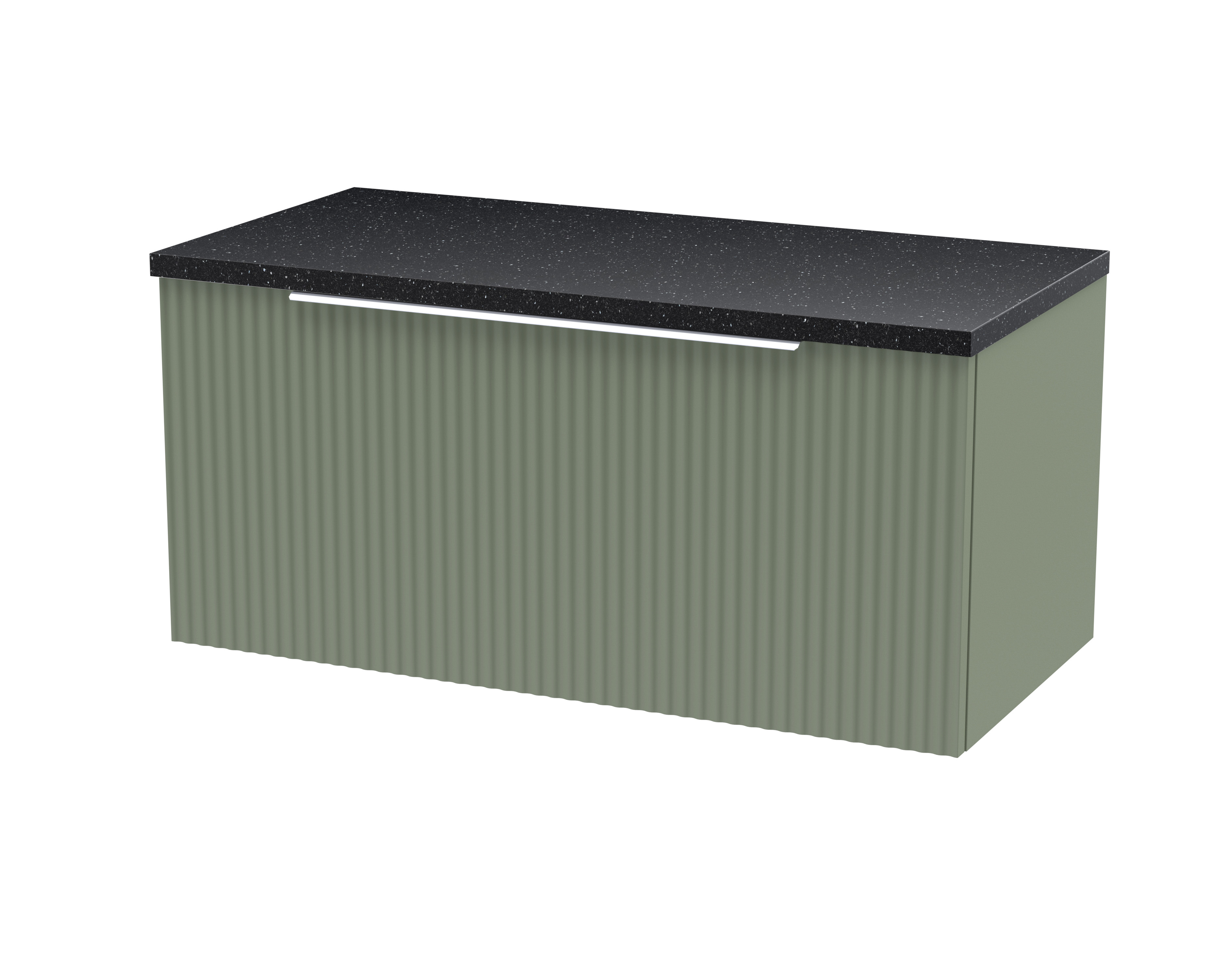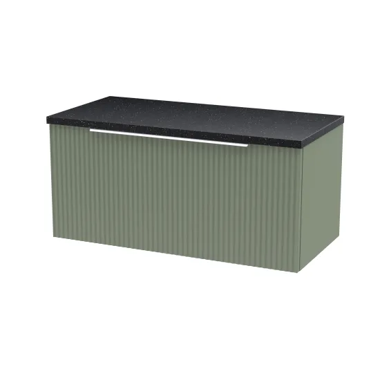 Hudson Reed Fluted 800mm Satin Green Wall Hung Single Drawer Vanity Unit With Laminate Worktop