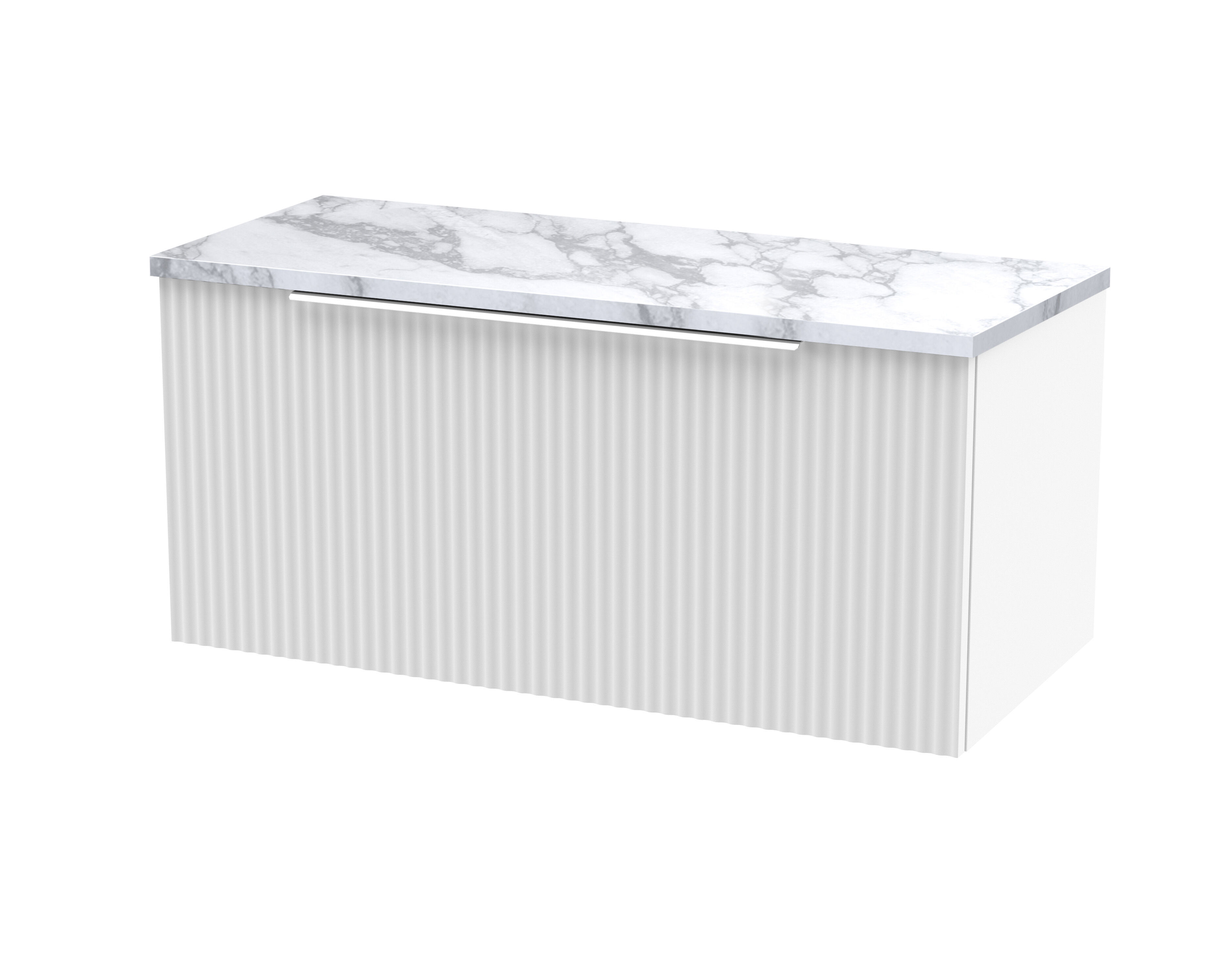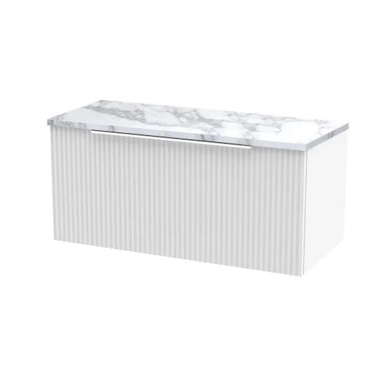 Hudson Reed Fluted 800mm Wall Hung Single Drawer Vanity & Laminate Worktop - Satin White