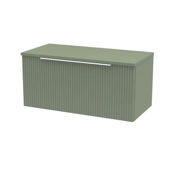 Hudson Reed Fluted 800mm Wall Hung Single Drawer Vanity and Worktop - Satin Green