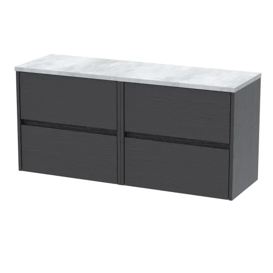 Nuie Havana 1200mm Graphite Grey Woodgrain Wall Hung 4-Drawer Unit With Laminate Worktop