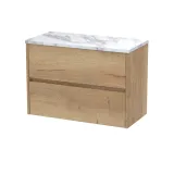 Nuie Havana 800mm Autumn Oak Wall Hung 2-Drawer Vanity Unit With Laminate Worktop